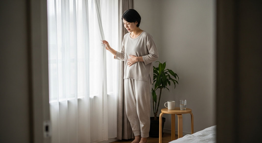 この時間帯には、カーテンを開けて朝日を浴びること、常温の水を一杯ゆっくり飲むこと、簡単なストレッチで体温を上げることが有効です。